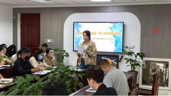 李奕锫老师作为新进教师,从学院的工作氛围、同事们的相互帮助等方面讲述了自己两个月来的工作感受,同时分享了自己作为辅导员的心理感受,励志要成为一名优秀的好老师。