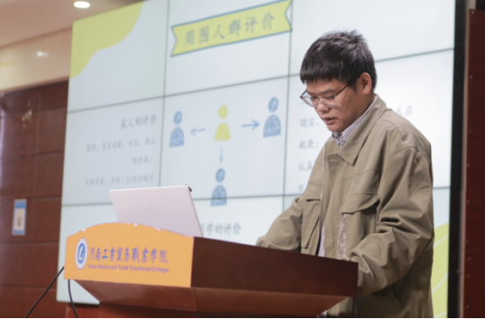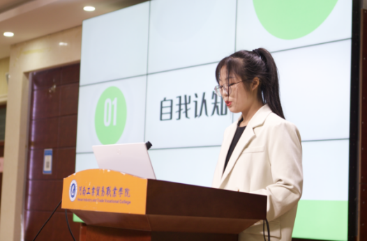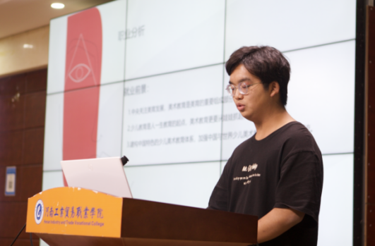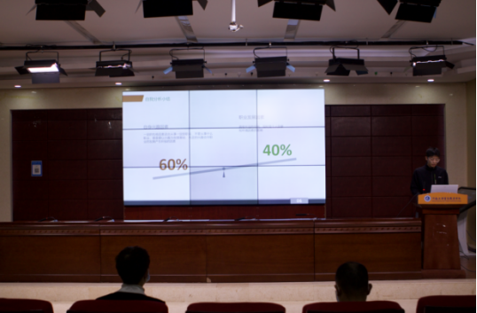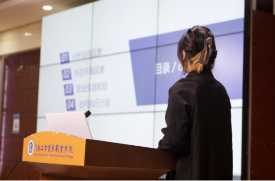 比赛开始前,主持人介绍本次活动流程、评分细则以及注意事项。随后,参赛选手根据赛前的抽签顺序依次上台,主要从自我认知、职业认知、职业选择、计划实施、整改与调整等多个方面进行展示,比赛过程紧张有序,选手们的职业生涯规划设计作品整体结构完整、逻辑清晰、重点得当,充分体现了参赛选手较强的综合能力。