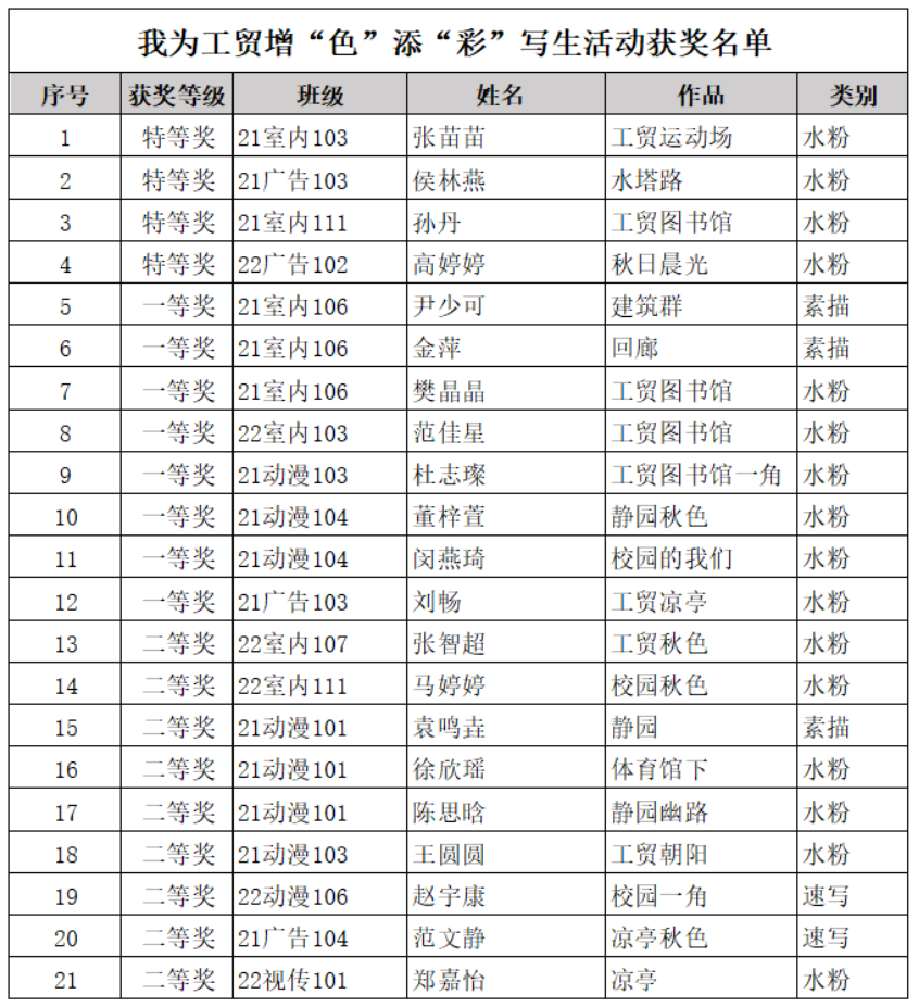 为了丰富同学们的校园生活,增强大家对母校的了解和热爱,艺术设计学院开展了---我为工贸增“色”添“彩”校园写生活动。本次活动旨在培养同学们热爱生活的积极阳光乐观的心态,用心感受校园之美,用画笔记录美丽的工贸校园的同时提高自己专业能力。