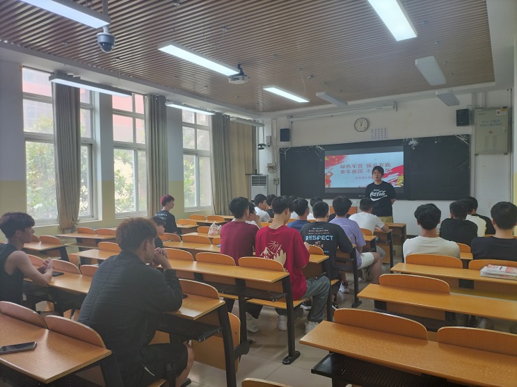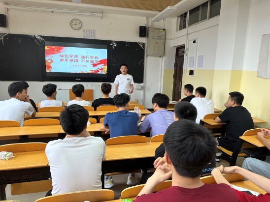 为弘扬爱国主义精神,增强青年学生的国防意识,提升学生国防素养,厚植国防教育情怀,艺术设计学院响应号召,5月19日-5月20日举办国防教育宣传日。5月19日中午12:30分在2204教室召开“绿色军营强兵有我”国防教育主题宣讲会。本次班会由艺术设计学院征兵专员张启帆老师主持,退役复学学生、21、22级意向入伍的33名同学参加此次宣讲会。