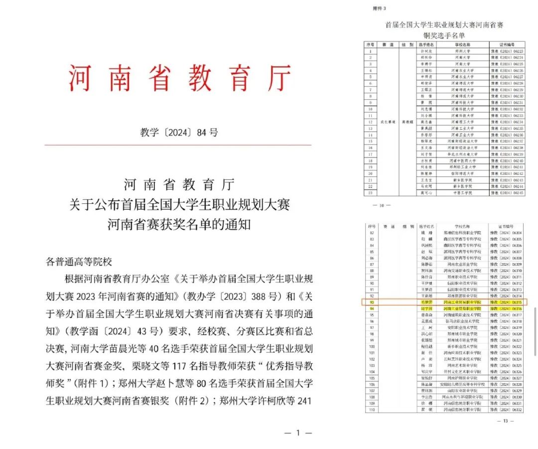 2024年3月2日,河南省首届全国大学生职业规划大赛河南省豫西赛区比赛完毕,我荣获了省赛铜奖的成绩。