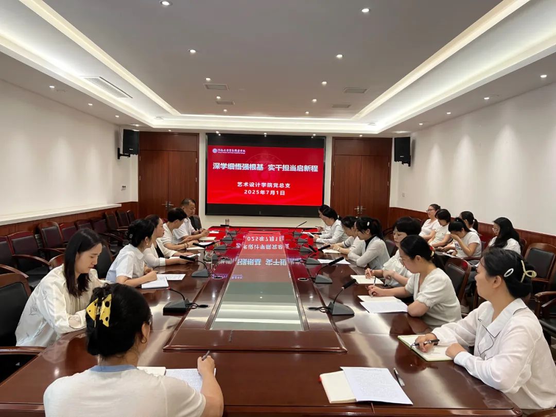 为进一步持续深化理论武装,强化纪律规矩意识,特别是聚焦作风建设,锲而不舍落实中央八项规定精神,推动学院各项事业健康发展,7月1日下午,艺术设计学院党总支在行政楼第三会议室开展“深学细悟强根基 实干担当启新程”七月集体学习。会议由学院党总支书记杨静主持,全体教师党员参加。