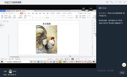 17日晚上的直播课上,翟珂老师向同学们介绍了本周要学习的两个内容,分别是羊和鸡的绘制,并立即进入到羊的教学示范。翟珂老师从羊的美好寓意介绍,引用《说文解字》和王国维的《观堂集林》中“羊”与“祥”的相通讲起,同时就“羊”字造字本身即起源进行讲解。羊在古代还代表着无私和公正,有一只名叫“獬豸(xie zhi)”独角兽,是一种神羊,传说这种神羊能够判断各种是非曲直,打官司时它会用羊角顶翻有罪的人,甚至把他吃掉。讲到这里,翟老师深情地告诉大家:“以前我们总认为羊是善良得近乎软弱,今天我们认识到,刚柔并济才是羊的全部。那么,从哪些方面才能很好地表现羊的这些特征呢。”随后,翟老师带领同学们,紧抓住羊头的角和羊身上的毛发用分组分缕的形式描绘,抓住羊的这两个特点,就能表现出羊毛的柔顺质感。烙画时需要做好对烙画温度和行笔速度的掌握,快慢、深浅恰到好处,笔触抑扬顿挫呈现出水墨中干、湿、浓、淡、焦的效果,把羊的动态传神地表现出来。同学们在翟老师的指导下进行了认真的练习。