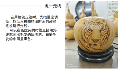 翟珂老师在本次线上课堂中,结合多年的实践经验认真详细的讲述了相关的课程内容。在整个线上课程的讲授中,翟珂老师将烙画的动物主题模块进行系统清晰的讲解,并分析了动物主题-——“虎”“兔”、葫芦烙画的方法和实践经验。同时翟珂老师对于本次的主题内容动物烙画技法等重点内容进行多次详细的讲解和强调,并让同学们及时做好笔记,在后续的作业实践中要进行细节的深化,同时就练习的重点和难点做了明确的指导。同学们积极主动地和老师互动并交流。