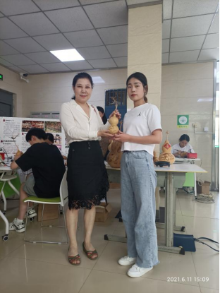 讲座结束后,段文花院长做了总结性发言,段院长对我们抱有很大的期望,也希望大家能够在学习非遗葫芦烙画的基础上,更好的发扬、传承中国传统文化。从我做起,以点带面,在后续的校园学习和工作中,把这项非遗文化技艺及精神内涵传承给下一届学弟学妹们和广大社会人士,真正的做好非遗文化的传承工作。