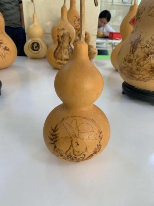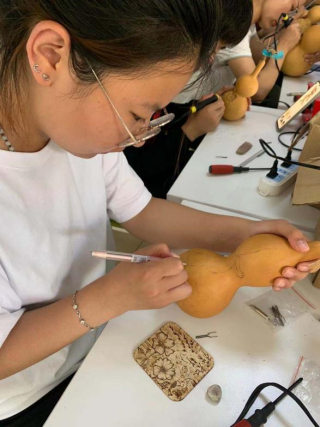 非遗工作室同学现场为师生定制葫芦烙画