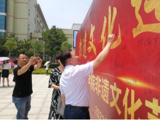 10日中午12点,签名活动开始,非遗工作室的师生邀请了学校党委刘合行书记参与了此次活动,刘书记亲临现场签字并拍照;活动开始半小时内,学生到场400余人,大家一致表示此次活动对学习和弘扬中国传统文化发挥着重大意义。
