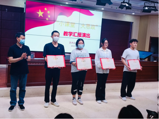 汇演结束后,乔书记对表演的4个班级进行集体颁奖。段院长在最后致辞中说到:通过一个学期的思政课堂的实践,实现了“集体受教育、朋辈受影响、个人受熏陶”的育人成效,打造出了立德树人的“大效果”。也希望大家树立远大理想,不断坚定理想信念,刻苦学习,锐意进取,努力成长为堪当民族复兴重任的时代新人。