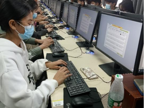 打字比赛系统设置为十分钟倒计时模式,每个参赛学生的得分由工作人员现场统计得出。比赛严格按照各项程序进行,充分体现了“公平、公正、公开”的原则;活动中,上下翻飞的手指和现场敲击键盘声让在场的工作人员都感受到了比赛的激烈;活动结束后,同学们都兴高采烈地讨论着比赛的过程,纷纷表示收获了很多,既锻炼了自身打字能力和反应能力,又增强了自己的竞赛水平。