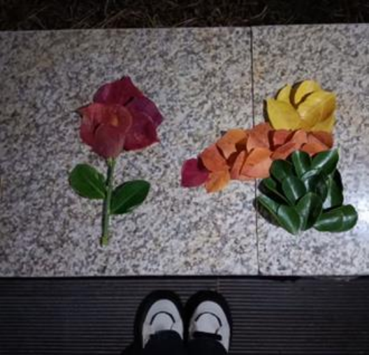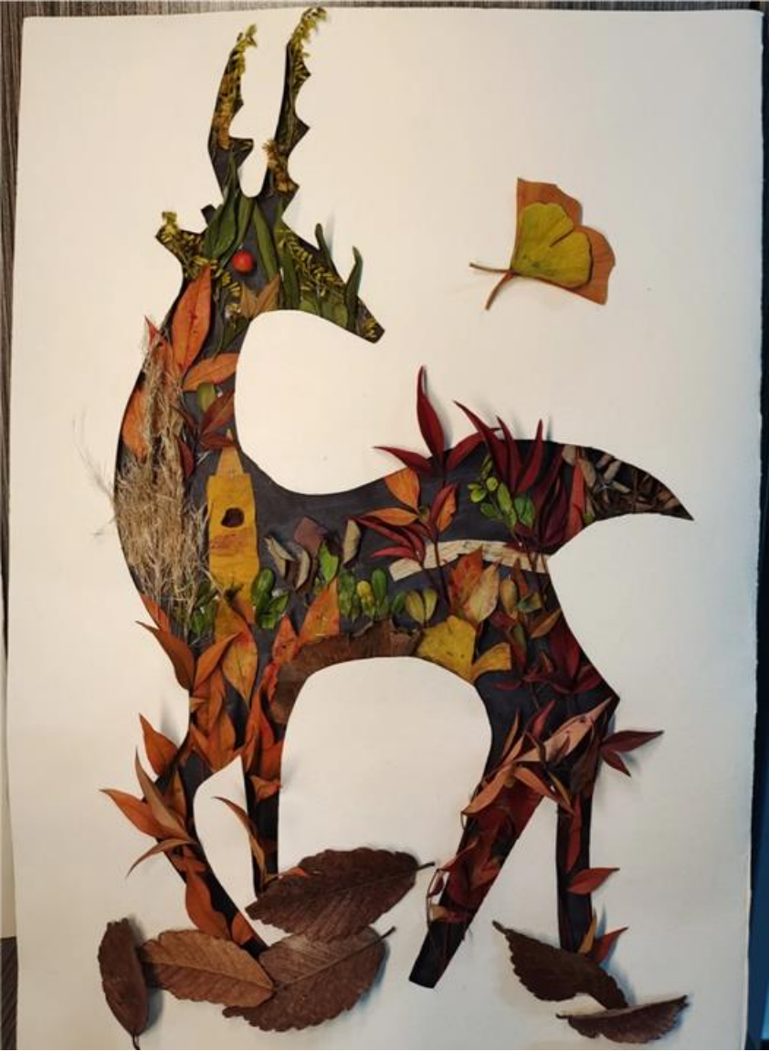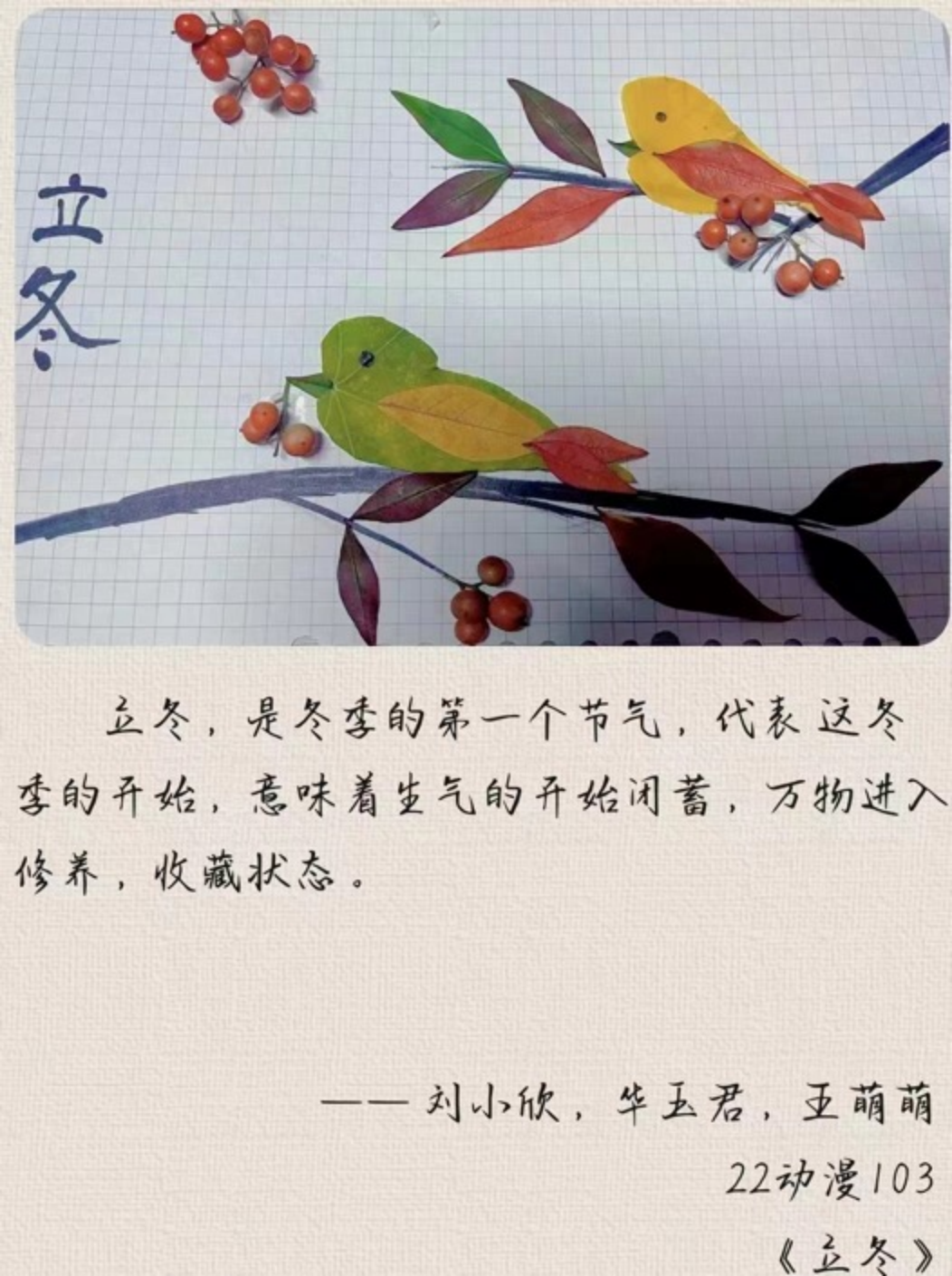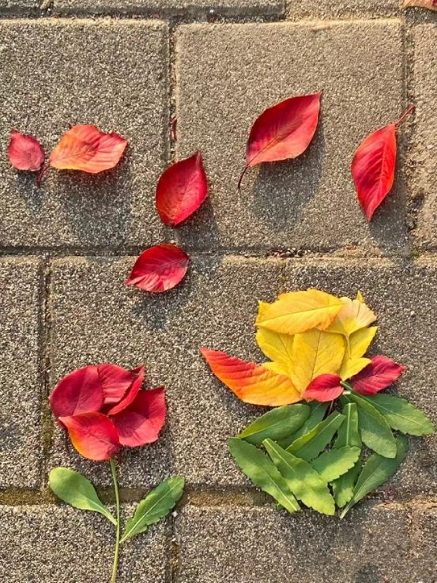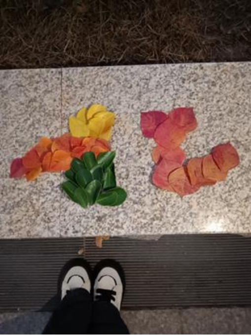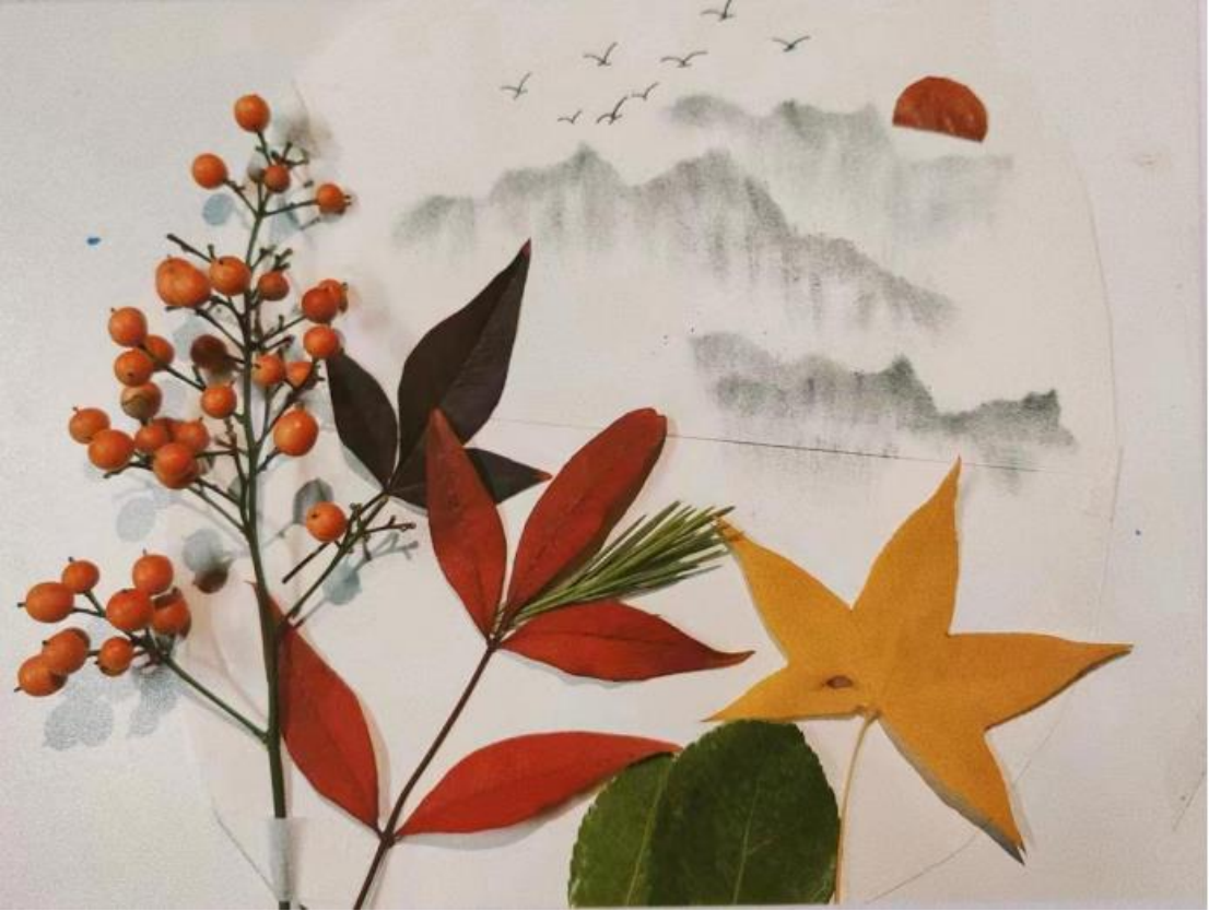 除此之外,同学们还用树叶拼成地图,用生活中发现美的眼睛创造出一幅幅色彩斑斓的华彩中国。
