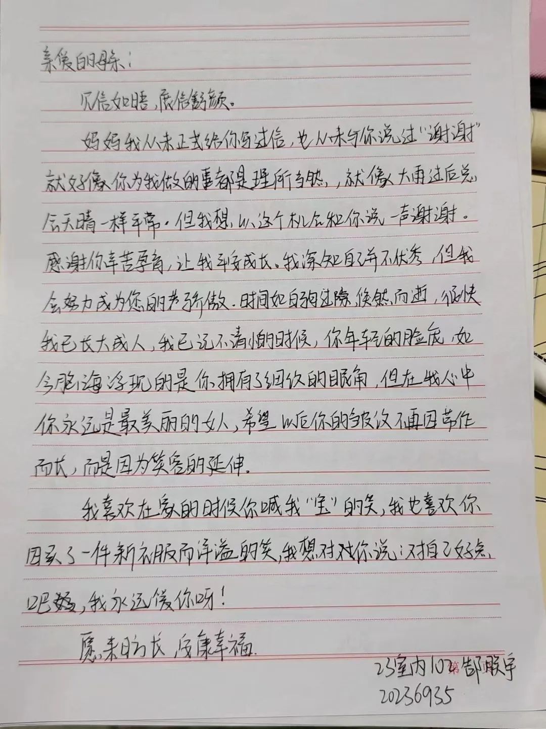 沐浴着习习春风,我们迎来了第114个“三八国际劳动妇女节”。为了让学生充分了解三八国际劳动妇女节,用心感受女性长辈的辛劳和对他们的关爱,培养学生感恩家人、热爱家庭的情怀,我院组织23级全体同学开展了三八国际劳动妇女节感恩主题活动,同学们为世界上最伟大的女性——“妈妈”、“奶奶”,奉上了最真诚的祝福及感谢。