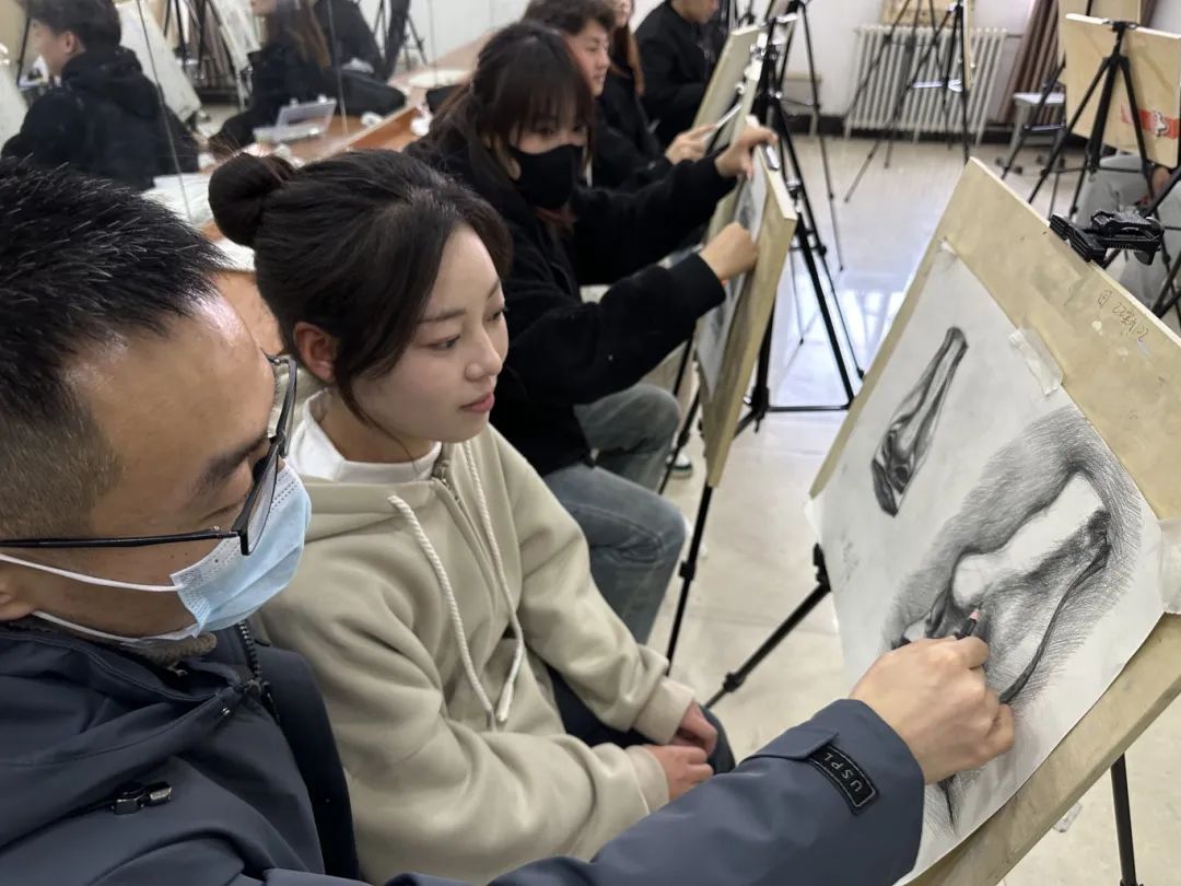 美术专业专升本辅导也在本周开展,解琨、张春彩、孙冠东、王飞、荆奕君、吴振英等老师参与了本次专业课辅导。在辅导过程中,本次作业是五官明暗素描,需要进行深入塑造。各位老师对学生作业的基本构图,黑白灰关系,结构形体塑造等方面进行了讲解。针对部分同学理解不到位的地方,老师们进行了示范。在讲解和示范时,给同学们强调了明暗的重要性,要多观察原画的特点,找准结构,进而完善明暗;形体塑造时,需要进一步强调结构,画出每个物体自身的特点,突出体积感。通过老师们的辅导,同学们领悟了绘画时的要点,对后续的学习建立了更强的信心。