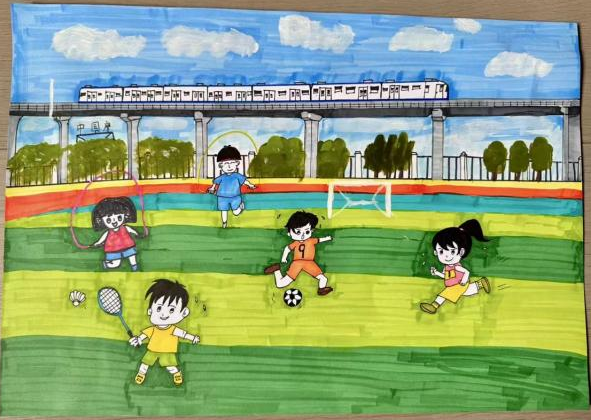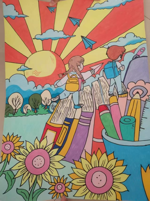 23室内101唐佳艺说,这幅画以明快色彩勾勒出充满童趣与希望的画面,孩子们背着书包,踩着书本,放飞纸飞机,寓意着在知识的滋养下追逐梦想,开启美好学习之旅。