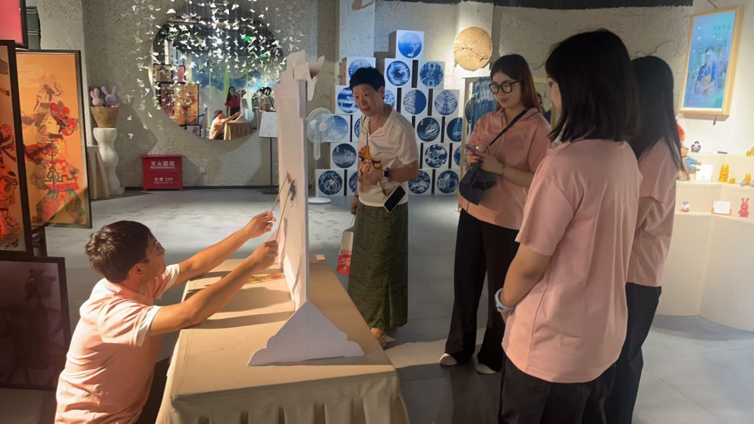 师生们一边聆听讲解,一边结合专业知识交流讨论,从设计美学角度分析非遗作品的造型比例、色彩搭配与符号寓意,让观展成为一场跨越古今的设计对话。