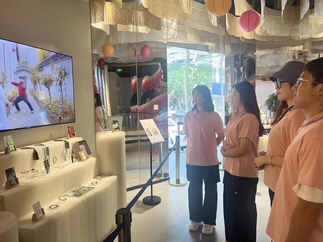 7 月 25 日下午,艺术设计学院院长段文花、党总支副书记张盼盼带领4名学生,走进河南省非遗美学馆,开启了一场兼具专业探索与文化浸润的研学之旅。师生们在古色古香的馆内穿梭,于指尖与眼眸间触摸中原非遗的千年脉络,让传统文化之美在研学中焕发新的生命力。