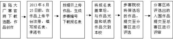 (2)学校负责核对参赛者提交的报名表、作品、光盘和参赛编号,填写院校参赛统计表;分类别报送分赛区。