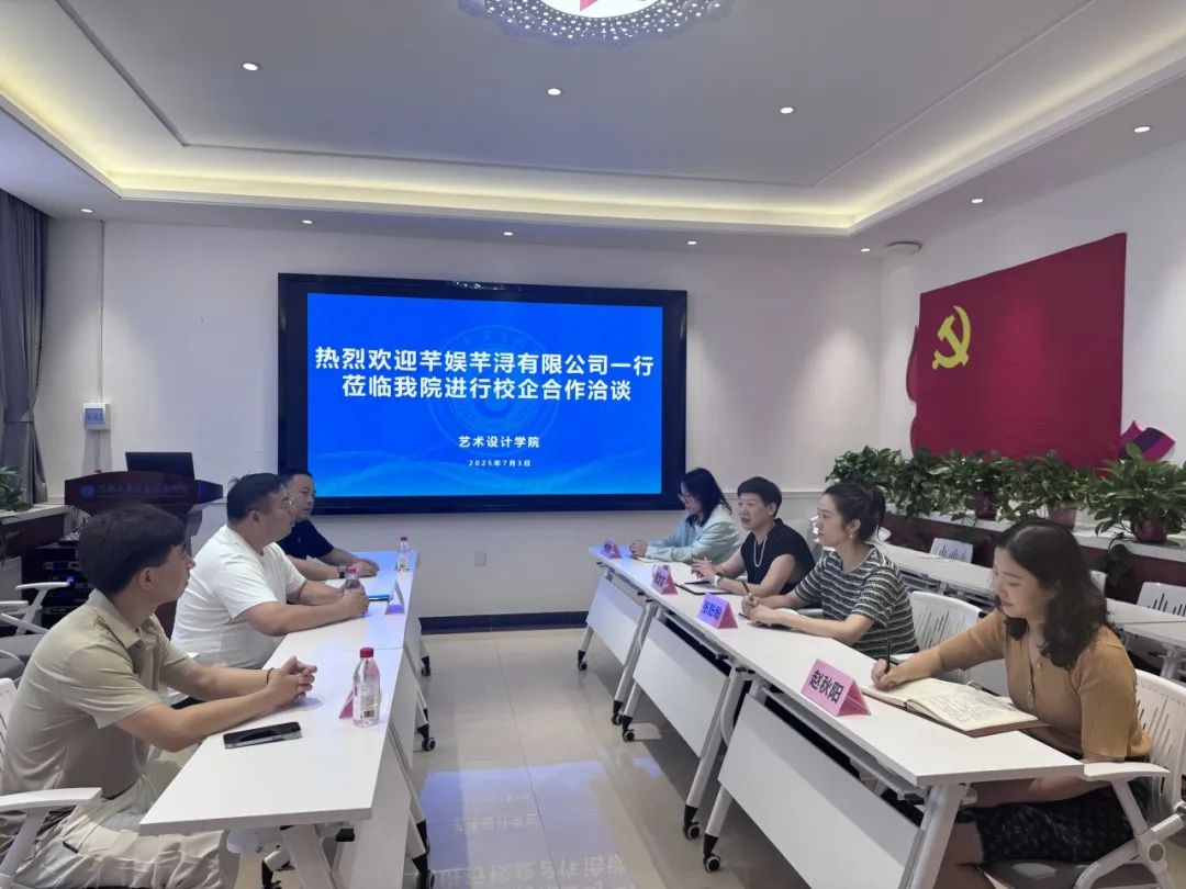 为进一步拓展学生就业通道,提升学生实践应用能力与行业适配度,7 月 3 日,艺术设计学院与河南芊娱芊浔文化传媒有限公司在校行政楼二楼思政空间成功举办校企合作洽谈会。艺术设计学院院长段文花、党总支副书记张盼盼、办公室主任赵秋阳,与河南芊娱芊浔文化传媒有限公司董事长卢庆磊一行三人,围绕校企协同发展、人才共育等议题开展洽谈会。