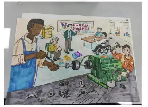 24工美101的武若彤说,在这幅画中,有工人,有知识分子,有老年人青力年,我障人士,他们对生行和工作有着不同的追求,通过定制化资源学习,不同职业与不同人参与的事物不同,址年个求知者都能找列属了己的成长路经。
