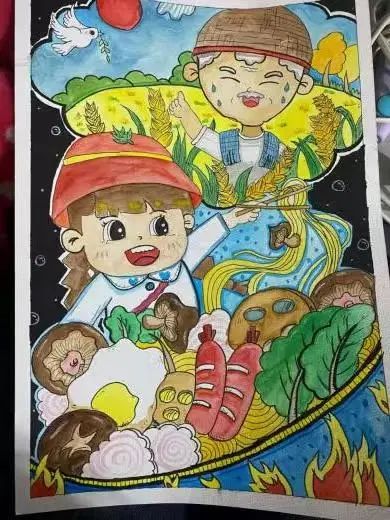 24广告101的贾琪说,这幅画以粮食为主题,通过生动的卡通形象和丰富的元素展现。画面中有辛勤劳作的农人、开心用餐的孩子,搭配麦穗、多样食材,背景蓝天白鸽,既体现粮食来之不易,源于农耕付出,又呈现珍惜粮食、享受美食的温馨。