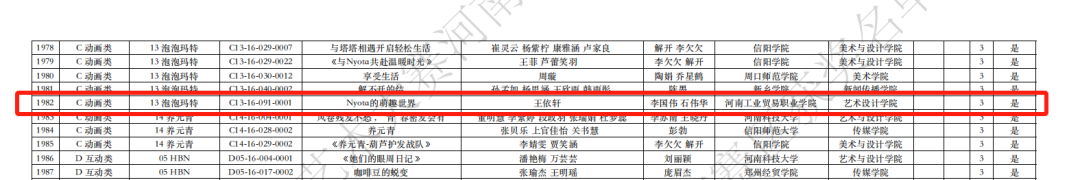近日,由教育主管部门指导,全国大学生广告艺术大赛组委会、中国传媒大学、大广赛文化传播(北京)有限公司承办的中国高等教育学会认可的竞赛“中国大学生好创意”,全国大学生广告艺术大赛河南赛区评审在河南大学落幕,艺术设计学院李国伟、石伟华教师指导的王依轩团队动画作品《Nyota的萌趣世界》荣获河南省赛区三等奖。