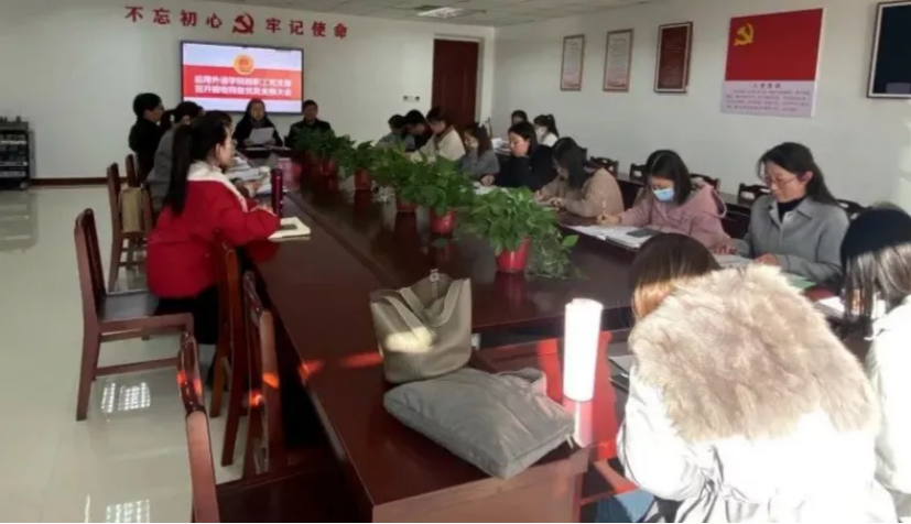 为进一步健全和完善支部组织建设,增强支部生机和活力,应用外语学院教职工党支部于11月23日下午1:30在图书馆A9006召开支部大会,讨论并研究是否接收刘晓姗、李成、张敏、李鹏敏4位同志为预备党员,此次会议由我院教职工党支部书记范勇慧主持,校党委委员、副校长李杰虎出席会议,全体教职工党员参加会议。