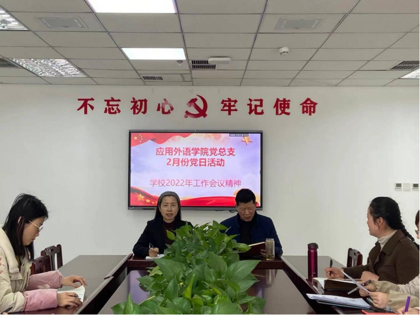 新岁序开,共赴新程。2月28日下午,应用外语学院党总支在图书馆9006会议室召开二月份党日活动,集中学习了全省职业教育大会会议精神和河南工业贸易职业学院2022年工作会议精神。应用外语学院党总支书记李松奇、教职工党支部书记、院长范勇慧、党总支副书记田莉莉、副院长顾佳和全体党员教师参加了此次党日活动。
