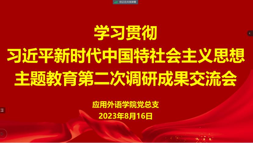 为进一步推进学习贯彻习近平新时代中国特色社会主义思想主题教育走深走实,按照省委和委厅主题教育领导小组部署安排及我校《关于做好开门抓检视整改工作的通知》,8月16日晚8:00,应用外语学院党总支召开了主题教育第二次调研成果交流会,对开门抓检视整改工作情况进行汇报交流。我院全体党员教师及学生代表参加了会议,会议由党总支书记李松奇主持。