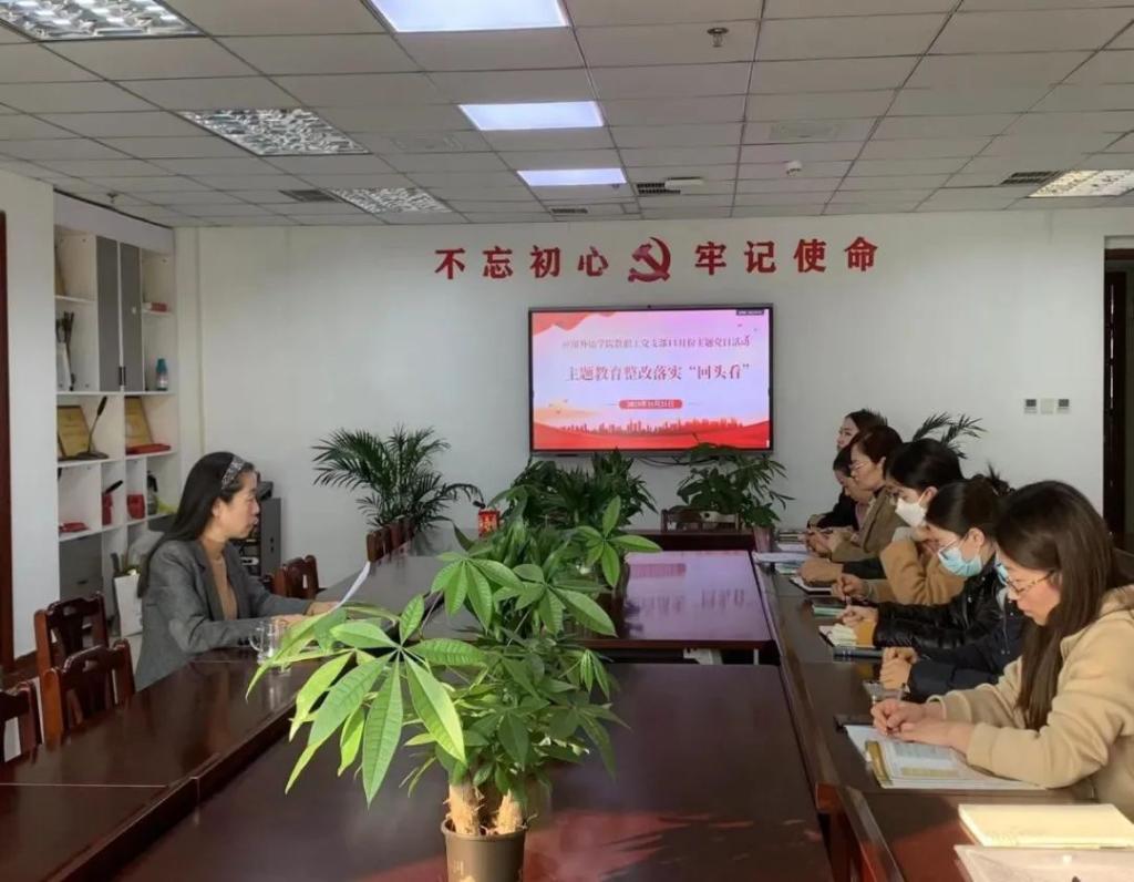 为认真贯彻落实学校扎实开展主题教育整改落实情况“回头看”安排部署,11月21日下午,应用外语学院教职工党支部组织开展主题教育整改落实情况“回头看”主题党日活动。会议由教职工党支部书记顾佳主持,党总支副书记、院长范勇慧和全体党员教师参加了会议。
