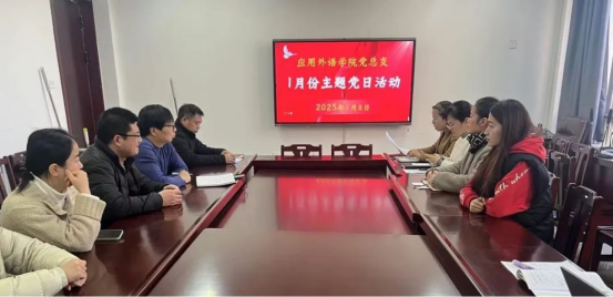 2025年1月8日下午,应用外语学院党总支在学院会议室召开了本年度第一次主题党日活动,进一步提升党员的政治素养和党性修养,推动学院党建工作和教育教学事业的全面发展。
