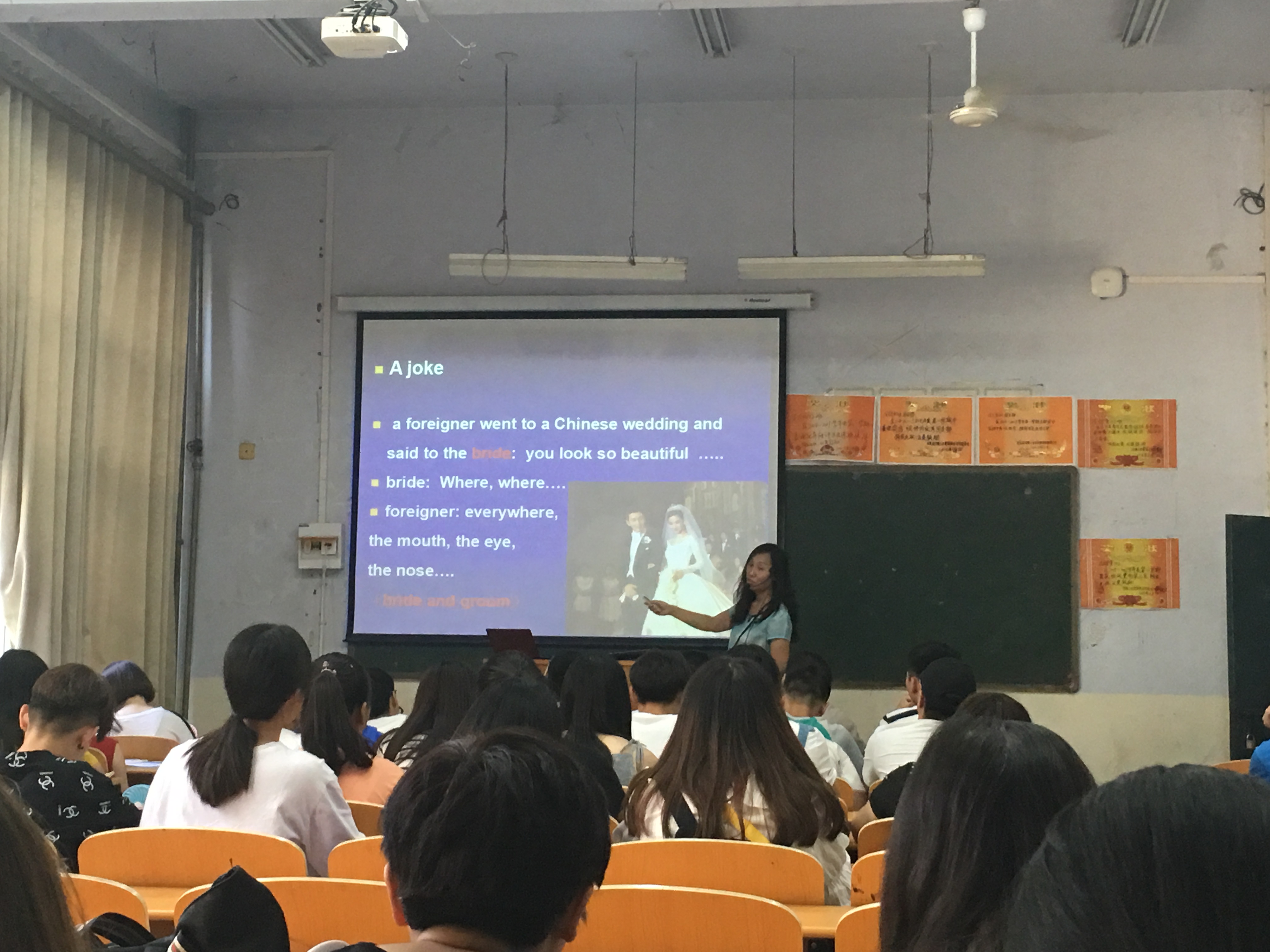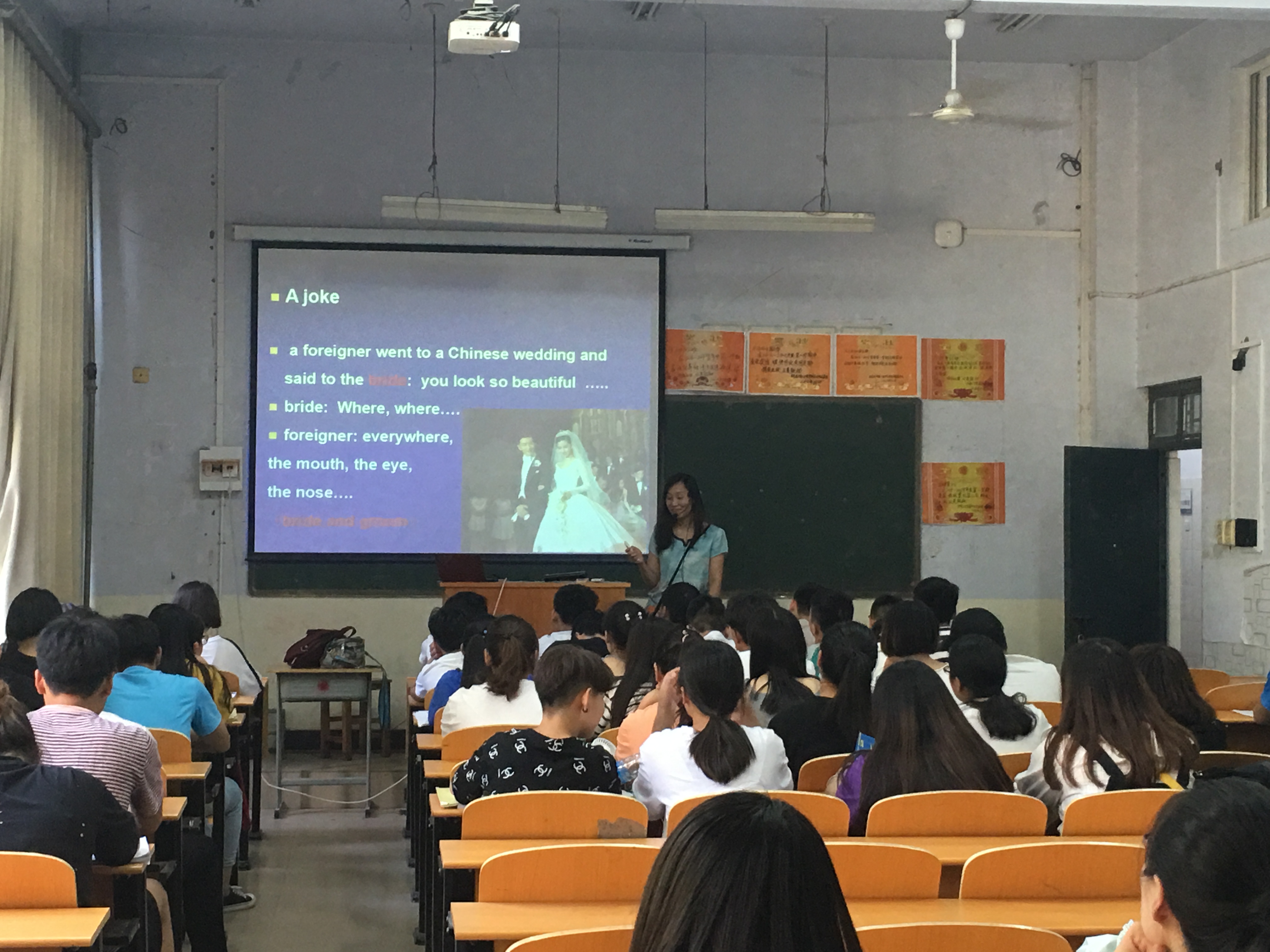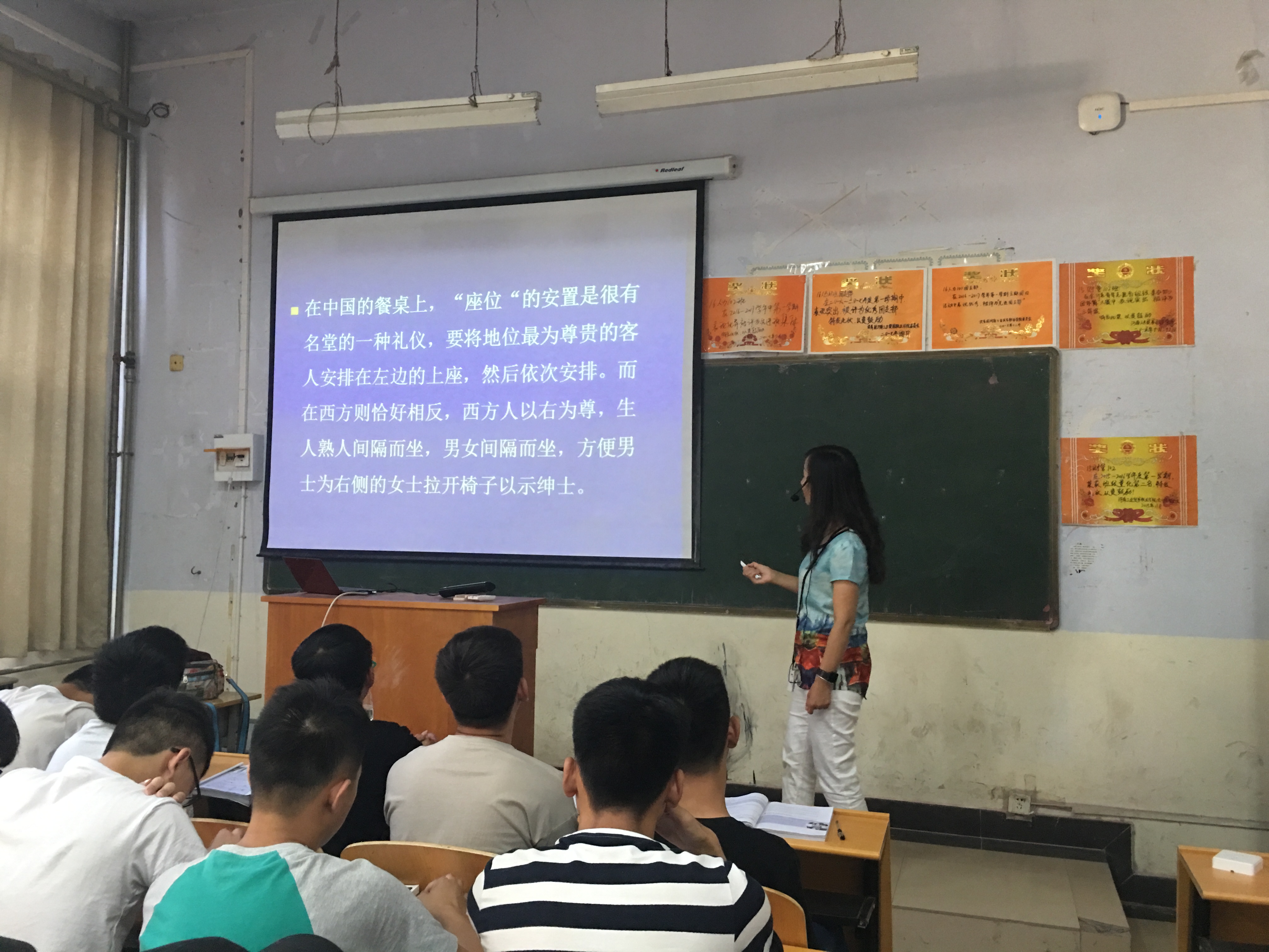 冯亚娜老师本次授课的主题为《大学英语》课程第一单元——Cultural Differences的导入部分。本节课一开始,冯老师便别出心裁地用英语给学生们讲了一个由于中西方文化差异而闹出的一个笑话,吸引了学生们的注意力,随后就提出问题让他们讨论了自己日常生活中所了解到的类似的故事,并由此引出了本节课的主题——文化差异。接着,冯老师又通过一个电影短片《刮痧》使同学们加深了对文化差异的认识和重视。看过生动形象的视频资料之后,冯老师便以美国为例,分门别类地向同学们介绍了中西方的各种文化差异,例如:中英文姓名的写法差异、餐桌礼仪的差异、排队礼仪的差异以及中西方人的性格差异。在授课过程中,冯老师结合自身经验和阅历,联系生活实际,把中西方文化差异讲得妙趣横生,让学生们涨了不少见识。