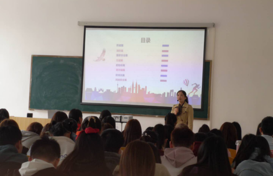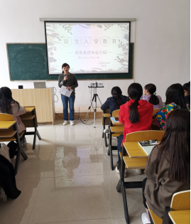 应用外语系高度重视此次教育活动,教研室主任顾佳、学生管理办公室主任赵现标、辅导员王玲作为代表分别对我系各方面情况做了详细介绍。其中,顾佳老师就商务英语专业进行详细介绍,具体包括专业介绍、人才培养方案、课程安排、学习环境及成果和就业前景等方面,从而让新生对我系的商务英语专业有了全面而深刻的认识,明确了就业方向和就业前景。