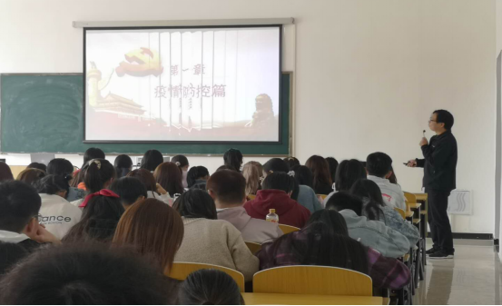 赵现标老师就思政和疫情防控方面为学生进行思想教育工作,新生们深刻体会到了中国共产党的伟大以及当前疫情防控工作的必要性。
