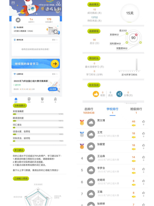 同学们报名踊跃,截止5月7日,2021级共200余名同学报名参赛。大赛依托FIF口语训练系统将赛场从线下延伸到线上,通过“AI+口语”在线赛事平台,以人工智能技术赋能英语新赛道,以“AI智能评分+专家人工评分”为依据,决出巅峰对决名单,参加全国巅峰对决赛。河南赛区5月9日起正式开赛!