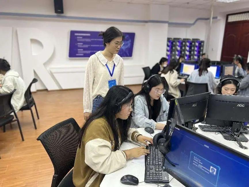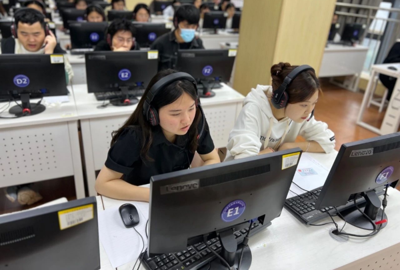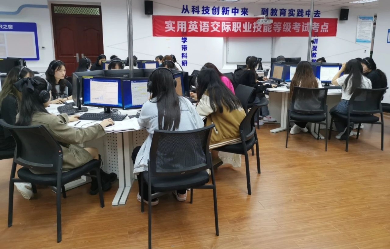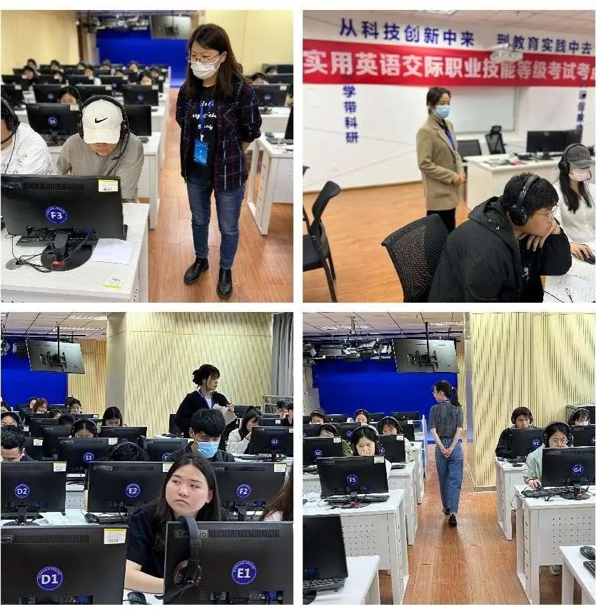 5月27日下午13:00,2023年上半年全国1+X实用英语交际职业技能等级考试(中级)如期开考。应用外语学院组织200名学生在学校龙湖校区图书馆5001、5002两个考场参加了考试。