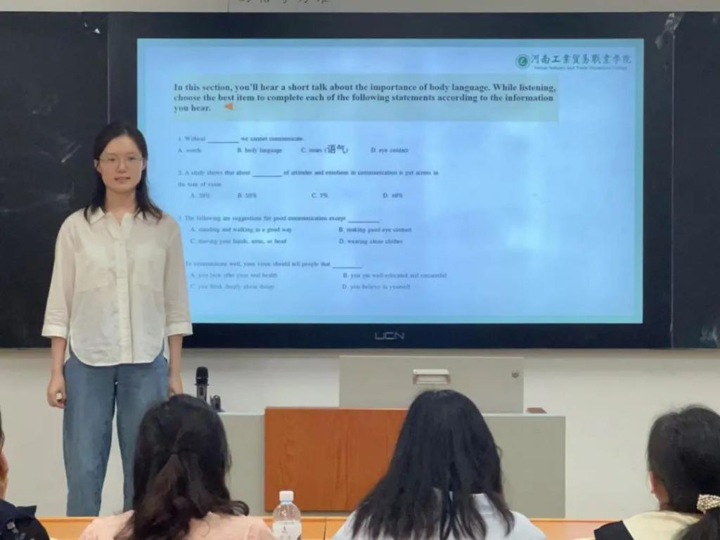 本次试讲活动共有5名教师参与。我校教师孙秋英、雒廷,我院新教师王肖、蒋雪珮,外聘教师曹占阁试讲《大学英语》。试讲教师对本学期承担的课程准备充分,授课内容生动丰富,重难点突出,教学思路清晰,语言流畅,教态自然,精神饱满,能积极调动课堂气氛,展现出扎实的专业知识和教学水平。试讲结束后,经考核专家组合议,本次试讲考核全部通过。
