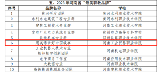 我校应用外语学院“用英语讲好中国故事”入选2023河南省“最美职教品牌”。