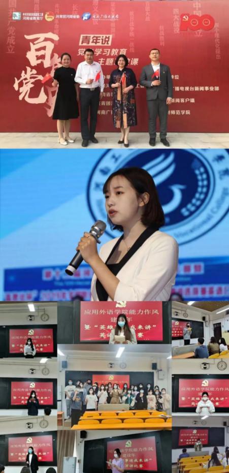 结合党史学习教育,引入中国共产党百年光辉历程、中华传统文化故事等鲜活内容,开辟党史教育“有声”阵地,与学生党支部联合开展“双语讲党史”“红色故事我来讲系列双语演讲比赛”,并将“工贸英语角”、“用英语讲好中国故事”主题英文秀、“中华传统文化讲座”等主题活动打造成为学校学生培养语言技能、进行文化交流、思想碰撞、讲好中国故事的优质舞台。2021年,学校“用英语讲好中国故事”工作室作品《红船,从南湖起航》参加中共河南省委教育工委、河南省教育厅、共青团河南省委、河南广播电视台联合主办的 “百年党史青年说”,荣获河南省一等奖;工作室学生骨干李宁参加河南省大学生职业生涯规划大赛,作品《传递中国声音,让世界读懂中国》取得河南省豫西赛区三等奖。