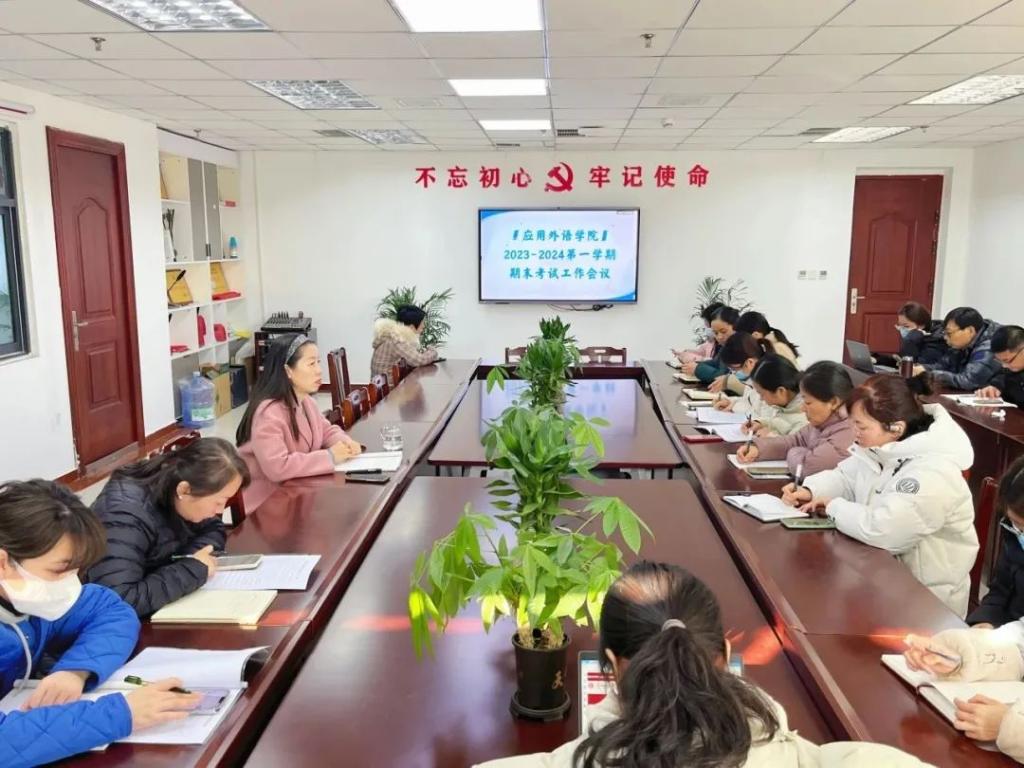 为严肃考风考纪,保障期末考试工作顺利进行,2024年1月2日下午,应用外语学院在图书馆A9006会议室召开了2023-2024学年第一学期期末考试工作会议,会议由院长范勇慧主持,全体教师到场参会。