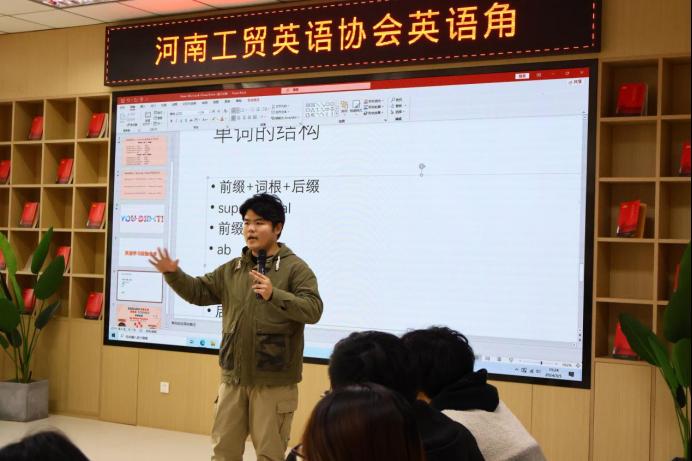此外,主持人还引导大家玩了一些英语单词游戏,倡导大家快乐学英语,随后和英语协会副会长魏琦同学分享了他们的各自英语学习方法。他们特别强调了英语兴趣对英语学习的重要性,认为只有对英语有浓厚的兴趣,才能持之以恒地学好它。同时,他们还介绍了如何利用词根词缀、艾宾浩斯曲线来背单词,这一方法引起了在场同学们的极大兴趣。大家纷纷表示,要将这种方法应用到自己的英语学习中,提高词汇量和学习效率。