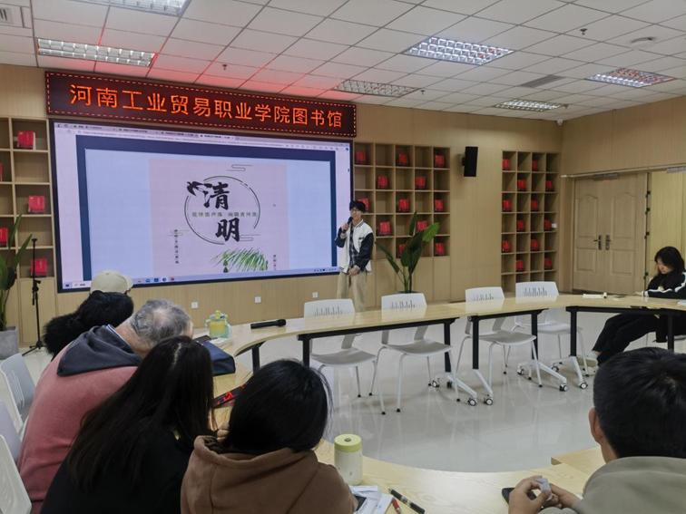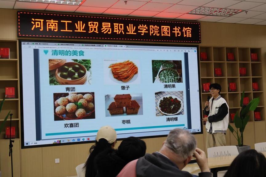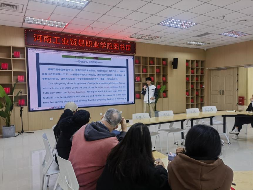 紧接着,张喆同学通过应用外语学院微信公众号“用英语讲好中国故事”中的“清明节”主题,对清明节的英文说法、来历、传统习俗和重要性进行了逐一讲解。他生动的讲解和流利的英语让在场的同学们听得津津有味,对清明节有了更深入的了解。