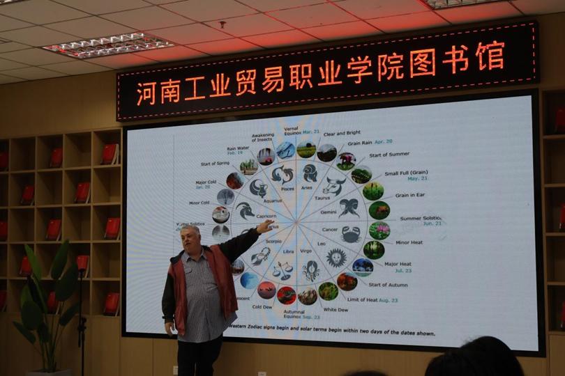 接下来,我们的外教Michael老师创造性地将中国24节气与西方的星座日期进行对比介绍,让大家深感东西方文化的碰撞和巧合。24节气强调人与自然的和谐相处,人类活动要顺应自然的变化,而西方的星座更强调个人性格和运气与星座之间的奇妙关系。