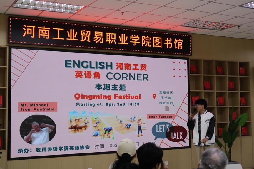 2024年4月2日下午,应用外语学院英语协会主办的英语角活动如期举行,本次活动的主题是“清明节”,全校20多位英语爱好者和外教Michael老师参加了本次活动。