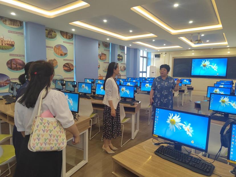 最后,在王君华院长的带领下,学院一行人员参观了外语旅游学院的空乘1+X实训基地、AI智慧课堂、一带一路语言服务与实训中心、各专业实训室和大师工作室等,在参观过程中,范勇慧对外语旅游学院实训基地建设和实训设备给予了高度评价,并表示今后要加强联系,相互学习。