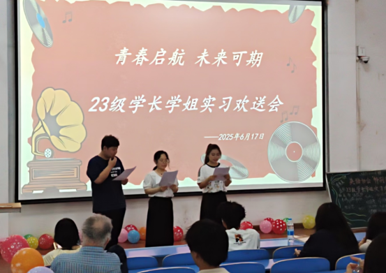 校园的时光长河里,总有一些瞬间,值得被永远铭记。2025年6月17日,外语与旅游学院英语协会为2023级即将踏上实习征程的学子们举办了一场满溢温情与期许的2023级实习欢送会,全校各学院2023级代表和外教Michael老师参加了本次活动。