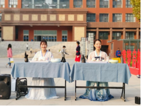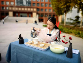 本次职教活动周活动主要包括茶艺展示和礼仪化妆指导两部分。茶文化历史悠久且文化底蕴深厚,为营造全校师生识茶、懂茶、爱茶、合力兴茶的良好氛围,展示职教学生风采,我系空乘专业学生身穿华美汉服为过往师生解说红茶茶艺。红茶品鉴共有九步,分别为准备器具、叶嘉共赏、冰心去凡尘、佳人入宫、润茶、凤凰行礼、回旋低斟、平分秋色、敬献香茗。每一个步骤都蕴含着中国茶文化的博大精深,听着悠扬的古琴声,伴随着升腾的屡屡茶香和娓娓道来的解说,师生们共同体验了一场精彩的茶文化之旅。
