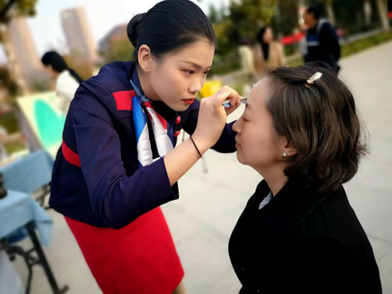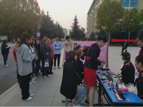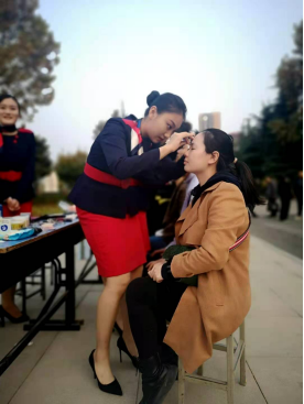 华夏为礼仪之邦,此次礼仪化妆指导活动旨在帮助学生塑造职业形象,提升职场魅力,弘扬中华职场礼仪风采。优雅的礼仪,精致的妆容能为人们带来美好的视觉享受和愉悦的心情,同时还可以美化自身形象,提升个人自信。为了让更多的师生了解化妆的重要性,我系空乘专业学生身穿制服向师生们普及化妆知识,现场为大家修眉、化妆,吸引了众多观众驻足体验。