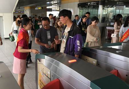 在来来往往的人当中总有在购买车票或乘车时有困难的人,此刻志愿者便化身为助行达人,热情的为乘客解决了各种困难。在乘客的一声“谢谢后”,志愿者们的脸上都洋溢着幸福的笑容。