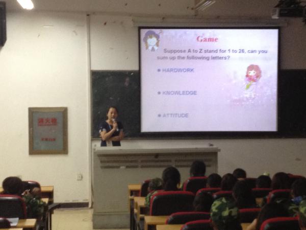 2012年9月13日,应用外语系范勇慧主任和张喆老师给12级新生进行入学培训。范主任主要为大家介绍了新生专业课程设计。张喆老师为同学们制做了精美的ppt,向大家介绍入学以后需要注意的事项,要学会自己独立学习。同学们认真地聆听了本次讲座,为大家在大学生活展开了新的篇章。