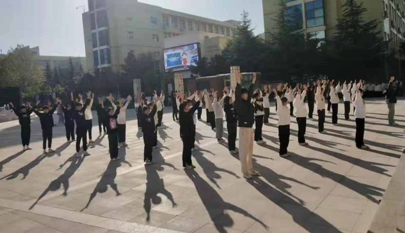 决赛现场,镜头所及之处,都是一张张热情洋溢的面孔。“你笑起来真好看,像春天的花一样......”伴随着轻快的音乐,参赛队伍队形变换自然流畅,队员们齐心协力,热情饱满,在赛场上留下了一道道舞动的身影。