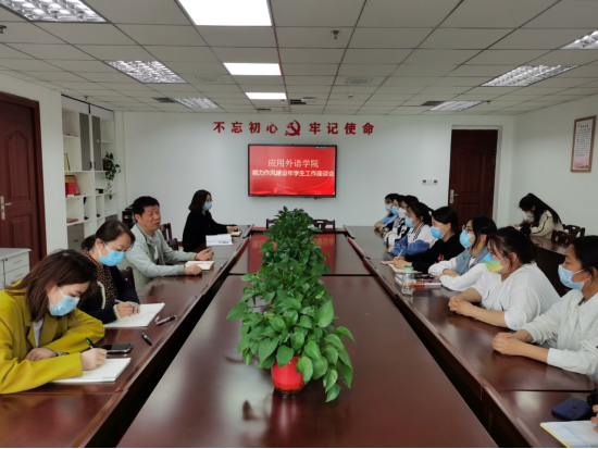 为深入贯彻省委书记楼阳生同志在全省开展“能力作风建设年”活动动员部署大会精神,应用外语学院于4月29日下午在图书馆9006会议室召开学生工作座谈会。应用外语学院党总支书记李松奇、副书记田莉莉、副院长张喆等相关同志参加了会议。